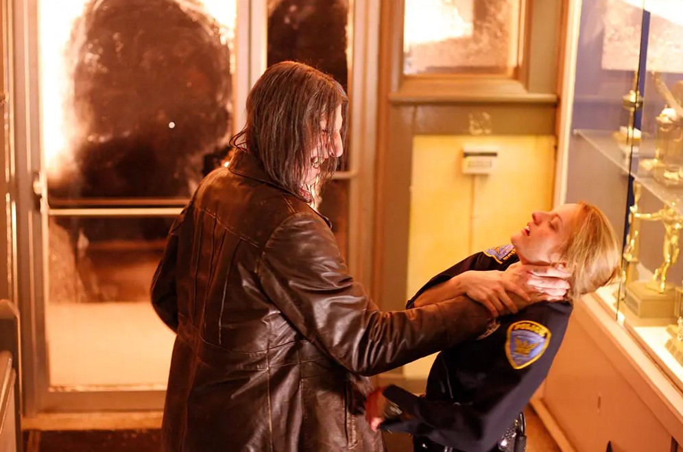 Over the course of the night, it begins to dawn on Bannerman that there’s something decidedly unnatural about Duane Mellon, aside from the fact that he enjoys snacking on people while they’re still alive. As her two male colleagues begin acting stranger and stranger and Bannerman begins seeing things, she becomes convinced that the serial killer’s cannibalistic habits have perhaps given him supernatural powers.