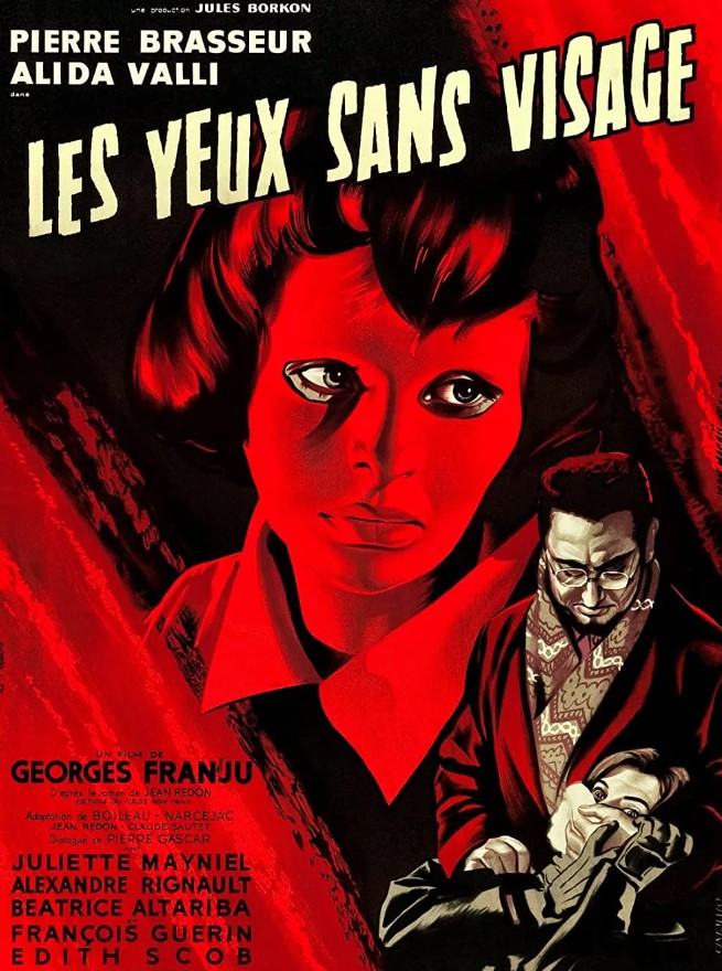 Enter producer Jules Borkon, who decided to buck the trend and see if he could make a splash with a film in the maligned genre. He bought the rights to a Jean Redon novel about an obsessed plastic surgeon attempting a face transplant on his disfigured daughter, then hired the writing team of Pierre Boileau and Thomas Narcejac, who had also written the novels on which the classic films Les Diaboliques (directed by Henri-Georges Clouzot in 1955) and Vertigo (directed by Alfred Hitchcock in 1958) were based. And then, he brought on director Georges Franju, who had directed nothing but documentaries until 1958, when he made his first foray into “fictional” filmmaking with La Tête Contre les Murs (Head Against the Walls).