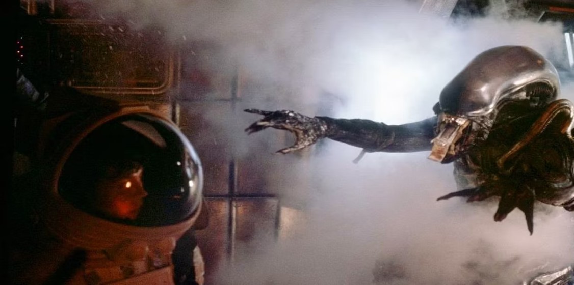 Before the decade was out, there was just one more shot in the arm to the horror genre, one which saw the scares coming not from knife-wielding weirdos or chomp-happy sea creatures, but from the vastness of space. Ridley Scott’s Alien, heavily influenced by 1958’s It! The Terror from Beyond Space but most definitely its own distinct thing, hit theaters in 1979 and gave audiences their first, pants-shitting look at one of the most horrifying creatures ever put to film: the later-named xenomorph, designed by eccentric Swiss artist H.R. Giger.